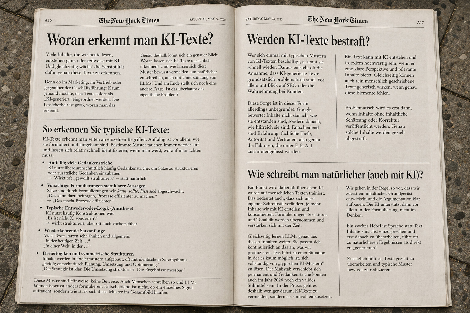 In unserem Test haben wir den kompletten Inhalt eines Newsletters als Zeitungsartikel visualisieren lassen. Das Ergebnis enthielt kaum Fehler — für einen so komplexen Input ein bemerkenswertes Ergebnis.